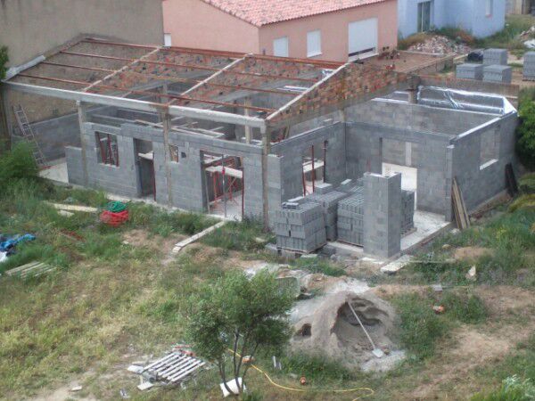 Zoals jullie onderaan kunnen zien , ze we intussen al redelijk wat opgeschoten met de ruwbouw van onze gites (achteraan in onze tuin). Hier hopen we in augustus het dak op te kunnen leggen!