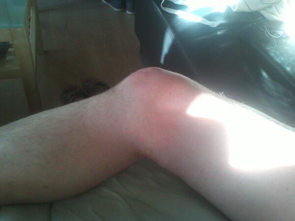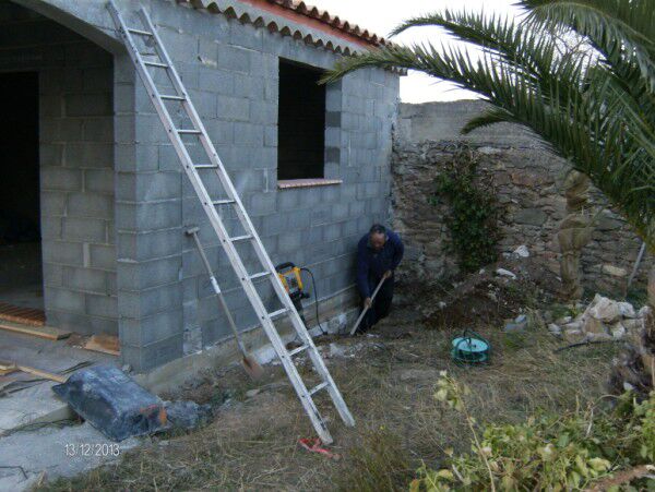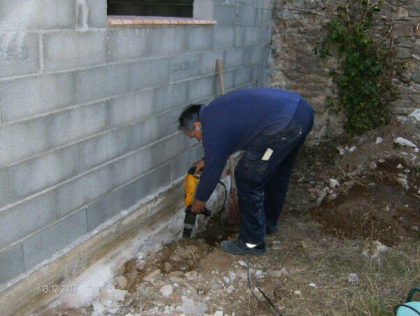 Jacques is bezig met de grondwerken rondom de gîte. Er moet rondom de gîte beton opgebroken worden om nadien de buizen te leggen. Een lastige job want zo een "marteau-piqueur" weegt veel. Bruno heeft ook de vensterbankjes kunnen zetten maar is noodgedwongen moeten stoppen wegens een knieblessure (zie laatste foto). Hierdoor is de voorbije week een beetje anders verlopen dan voorzien. Gelukkig is bijna alles gedaan. Een operatie zal niet lang uitblijven maar liever nu dan té laat... . Maw, onze planning zal dusdanig veranderen de komende weken...