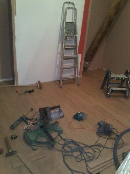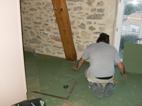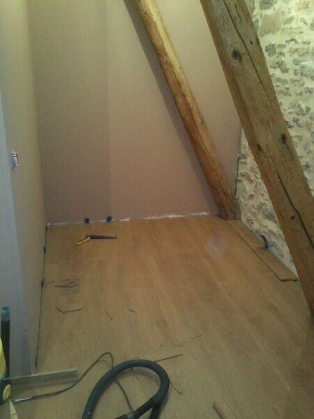 De laminaat op de slaapkamer is klaar. Nu enkel de plinten nog en alles is klaar. Omdat de werken op de 1ste verdieping niet lang meer op zich zullen laten wachten moet dit verdiep leeg zijn Daarom zijn we bezig om beetje bij beetje kamers leeg te maken en de dozen etc te verhuizen naar de gîte waar ze een nieuwe stockageplaats krijgen.