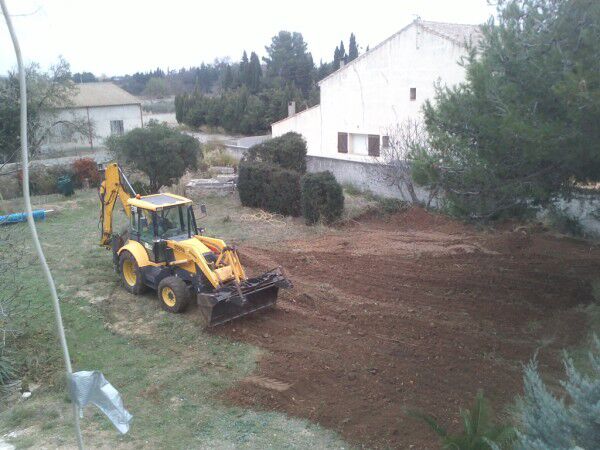 We zijn eindelijk van start kunnen gaan met enkele belangrijke graaf -en grondwerken. Toen de vorige eigenaars het zwembad hebben laten graven is deze aarde nooit weggevoerd geweest. Het gevolg was dat langs de beide zijden van onze tuin enkele grote hopen aarde lag. Deze zijn weggevoerd en er is dan ook dadelijk plaats gemaakt aan de gite voor het leggen van een terras. Deze graafmachine moet nog een keer terugkomen voor andere grondwerken maar voorlopig hebben we de indruk dat de tuin eindelijk een beetje op niveau komt.