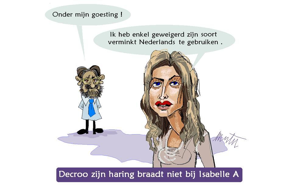 De grote Manitou en coördinator van ons zeer unitaristisch getint politieapparaat, dat stilaan het grootste bordeel van België dreigt te worden, is aan een zielige reeks evenwichtsoefeningen begonnen. What 's in a name? Dewael dus, beweert dat er onder zijn strooien dakje, nooit het idee is binnengeslopen, bepaalde vrouwelijke benoemingen een duwtje in de rug (?) te geven. Niet te nauwlettend de aanwervingsproceduren door derden aan laten passen en verder maar doen of je neus bloedt !!! Doet mij denken aan die grote Amerikaan met zijn "read my lips...I did not have sex with...."enz. Ontkennen dus, zelfs wanneer er met duidelijke E-postteksten gezwaaid wordt, door de eerste, in de rug gestoken slachtoffers, die het tegendeel kunnen bewijzen? Je moet maar durven.