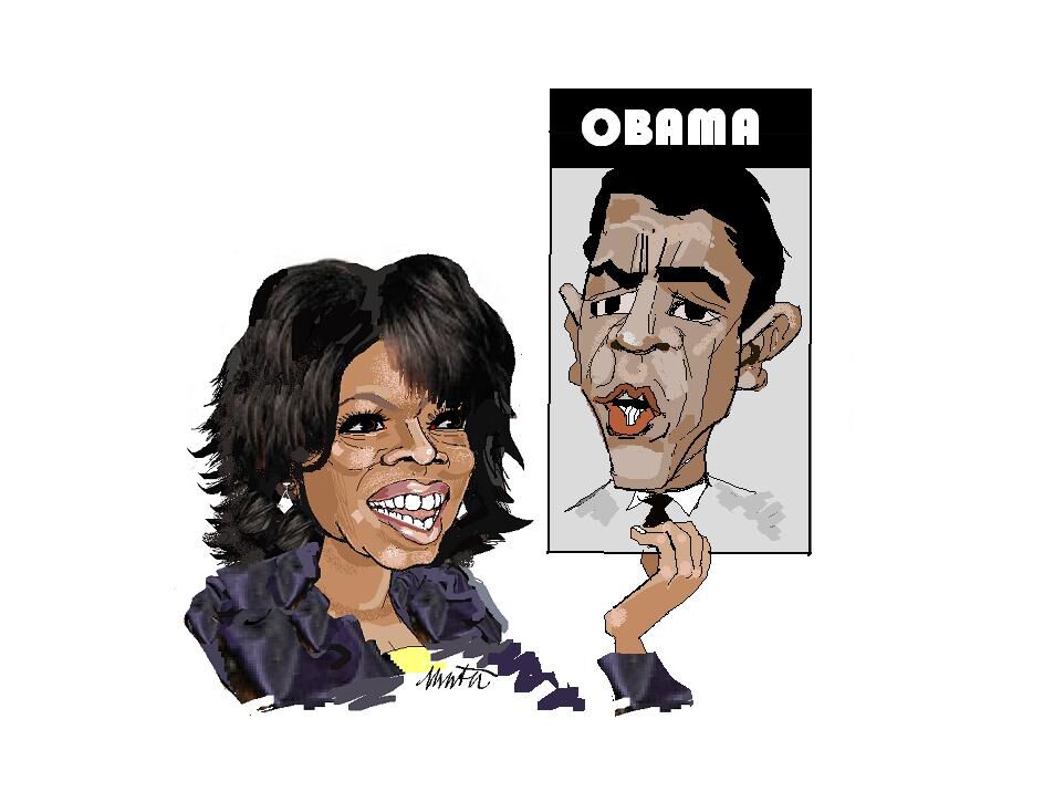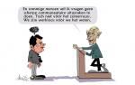 Uitzonderlijk wil ik wel eens een cartoon wijden aan een buitenlandse gebeurtenis. In dit geval heb ik gezocht naar één zin waarover beiden het eens zijn: hun vrees voor de economische recessie. Wie van de twee het ook wint, het pluspunt bestaat er uit dat Bush (met zijn veel te brede anorak en zijn wijdse wijze van lopen) uit het wereldtoneel verdwijnt. Ik ben eens benieuwd waar ons ijzervretend Condo'tje nu terecht gaat komen. Misschien verdwijnt ze in een harem van een stinkendrijke Bahreinse sjeik?