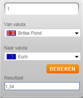 De wisselkoers hebben we opgezocht, 1 Britse Pond  = 1.34 Euro