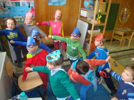 Onze apotheose na 2 weken werken rond het thema superhelden ; CARNAVAL !!