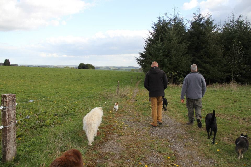 samen met Anneke en Marcel een wandeligetje gaan maken in de Ardennen , het is een wandeling die Herman zelf heeft uitgestippeld hondjes kunnen direct los het is een mooie wandeling met van alles en nog wat , stukken in het bos , door de wei af en toe een riviertje wat wil een mens en hond nog meer