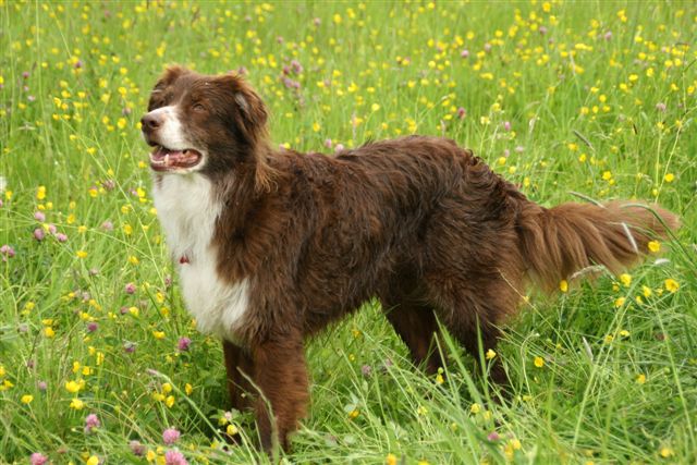 Mag ik even onze honden voorstellen , de oudste ven de bende is Gino , Gino is een Australische Herder geboren op 6/7/2001 hij houd onzettend van tennisballen en stokken sleuren en zwemmen Gino heeft aan dogdancing gedaan en een beetje gehoorzaamheid en wat frisbee momenteel is Gino op pensioen , hij heeft het begin van een hernia en in zijn rechter achterhand zijn zijn spierreflexten helemaal verdwenen . Einde 2009 kreeg Gino ook Catarac aan beide ogen en werd hij blind op 4 dagen , dit was voor Gino een regelrechte ramp , alhoewel we wel verschoten waren hoe snel een hond zich aanpaste aan zijn nieuwe situatie , hij ging gewoon mee wandelen en we waren soms echt stomverbaasd dat hij best heel goed op het pad blees maar thuis durfde Gino de deur niet meer uit omdat we in een bos wonen wist hij niet goed waar de bomen stonden , nadat we bij de oogarts heel wat testen hadden moeten doen kregen we groen licht om één van Gino's ogen te opereren dus kan hij nu weer uit dat ene oogje zien en kan hij nu weer genieten van het leven en van zijn tennisbal en zijn wandelingen , Gino is een heel aanhankelijke hond met een pracht van een karakter gewoon een zalige hond die super gehoorzaam is , we hopen Gino nog een aantal jaartjes bij ons blijft , momenteel zijn we met alle sporten getopt en kan hij heel goed leven met die hernia , hij staat momenteel ook nog niet op pijnstillers dus gebnieten we nog wat van onze bruine mop