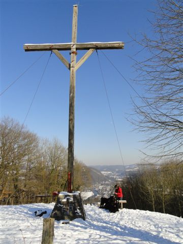het gigantische Croix de Septroux, als je onder het kruis staat heb je een prachtig vergezicht