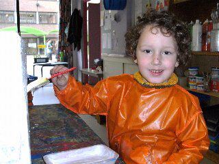 Vandaag schilderden we de grote doos die Hubert vorige week meegebracht had. We maakten er een grote politieauto van. Lunes bracht ook een hele leuke politieauto en politiehelikopter mee, waar veel mee gespeeld werd. 's Middags werd er vooral veel gepuzzeld. Martine had drie nieuwe puzzels van 'Jules' in de puzzelhoek gelegd.