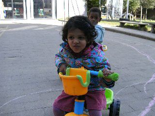 Sorry, geen foto's vandaag. Ik vond mijn fototoestel nergens deze morgen... (Ben nu net thuisgekomen, doe mijn boekentas open en mijn fototoestel lag bovenaan te blinken...) We werkten verder aan de auto's van gisteren, we versierden die nog met plakfiguurtjes. Daarna gingen we turnen met Saskia: Lunes had een bal mee van thuis en wou daar heel graag mee spelen in de turnles. Saskia speelde allerlei spelletjes met ballen. Na de speeltijd aten we yoghurt, nog een verhaaltje en de dag zat erop!!