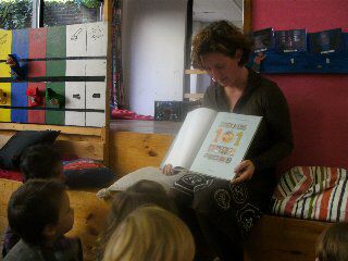 Even spelen in de hoekjes (puzzelen, computer, poppenhoek, fietsen,tekenen,..) en dan turnen met Saskia. De mama van Mona kwam nog een verhaaltje lezen. Dank je wel Ruth!