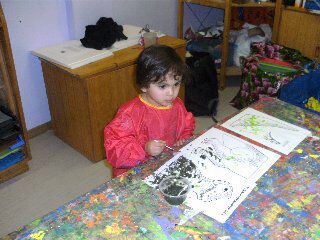 Vandaag schilderden we onze dino- eieren die we gemaakt hadden uit papier- maché. Enkele kinderen maakten ook nog een dino- masker: kleuren en prikken. Elisabeth speelde ook een begrippenspel: de begrippen onder, midden en boven werden geoefend. 's Middags vierden we de verjaardag van Marcus. Hij is vorige week drie jaar geworden. Hiep hiep hoera!! We dansten en zongen en aten heerlijke pannekoeken.