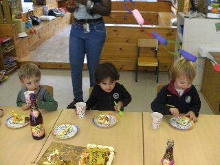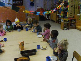 Hiep hiep hoera!! Diederik is drie jaar geworden!! De papa van Diederik kwam gitaar spelen in de klas. We rijgden parels volgens opdrachtkaarten. We vierden ook de verjaardag van Diederik. We zongen, dansten, maakten vuurwerk.. We aten lekkere cake! We kregen van Diederik ook een prachtig klascadeau: een driewieler voor in de klas!! Dank je wel!!!! 's Middags speelden we in de klas van An.