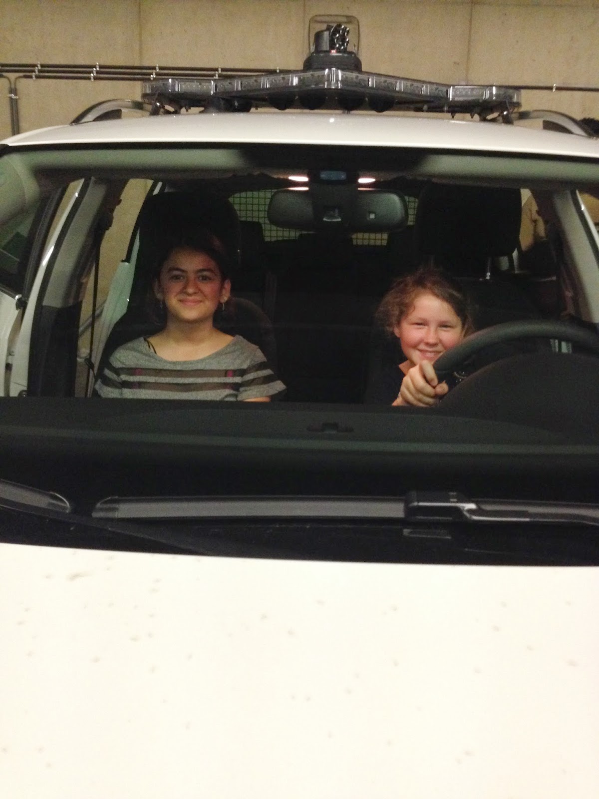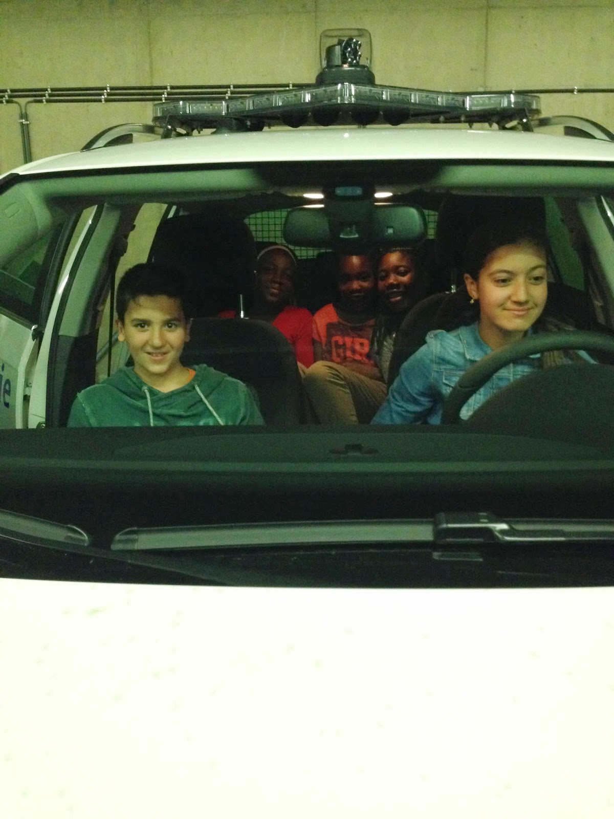 Dat was bijzonder interessant. Tijdens de rondleiding mochten we een kijkje nemen in de cellen, bij de dispatching, leerden we hoe een ondervraging gebeurt, hoe men vingerafdrukken neemt, mochten we in de voertuigen zitten, het materiaal bekijken... om een lang verhaal kort te maken... We kregen een blik op het spannende politieleven.