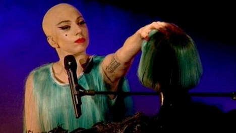 Net nu we dachten dat Lady Gaga door haar 'looks' heen was presteerde ze het toch weer om haar publiek te verbazen. In het Britse tv-programma Paul O'Grady live liet ze het publiek even slikken toen ze tijdens het nummer Hair onverwacht haar turquoise pruik afzette en een kaal hoofd tevoorschijn kwam. Maar Gaga heeft zich niet echt kaal laten scheren want wie goed keek, zag dat ze haar haren in een speciaal netje had verstopt.