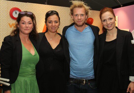 zitten, kwamen acteurs Amaryliis Uitterlinden, Ini Massez, Jits Van Belle en Rik
