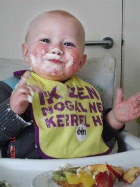 De VRT wordt overspoeld met foto's van baby's met een Eén-slabbetje. Begin dit jaar lanceerde de zender een promocampagne. Mama's, papa's, oma's en opa's van kindjes die dit jaar één jaar worden konden een slabbetje bestellen met titels of slogans van bekende programma's. 'Ik ben nogal ne kerel hé', 'Zal 't gaan ja 'en 'De Slimste mens ter wereld' waren er maar enkele. In totaal werden 40.000 slabbetjes aangevraagd en verstuurd. Sinds vorige zaterdag vraagt de VRT aan de kijkers om foto's op te sturen van de baby's met hun slabbetjes. En ook dat wordt een grandioos succes. Meer dan 2.000 mensen stuurden al een foto van hun spruit. Elke dag kiest Eén 'de baby van de dag'. bron:de standaard