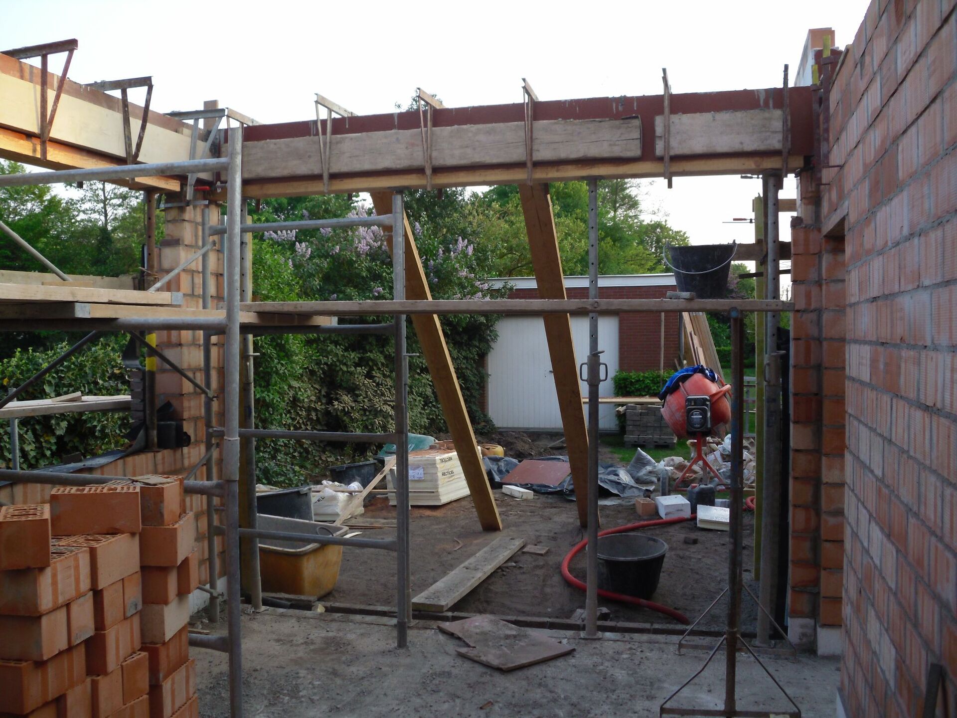Ondertussen liggen de werken even stil: eerst moeten de ramen geplaatst worden. Da's iets voor de eerste week van juni. Van zodra dit gebeurd is, kunnen alle vakmannen weer één voor één hun ding komen doen.