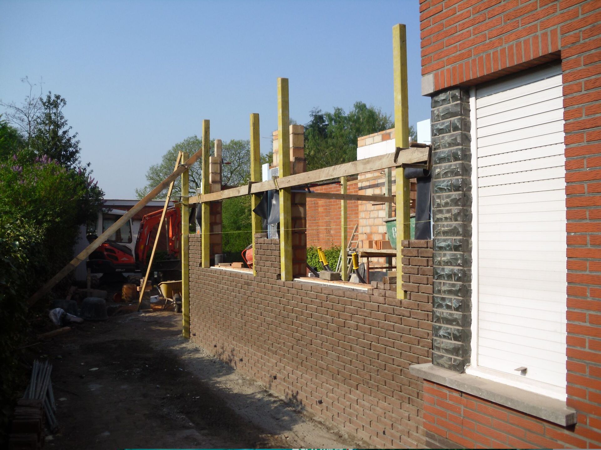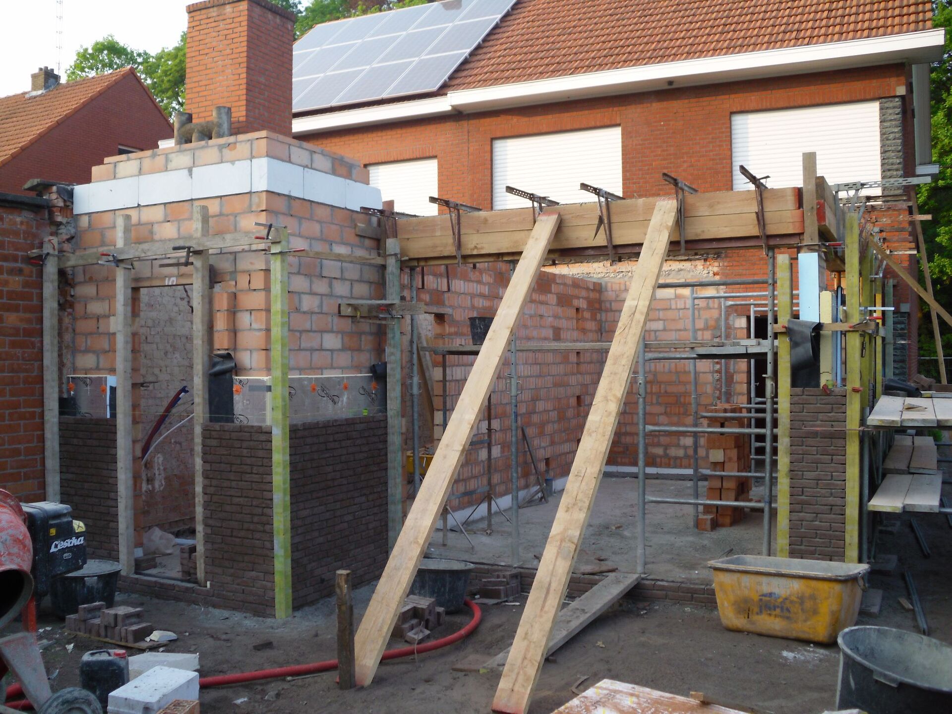 Het zonneke laat alles wat sneller groeien en dat lijkt ook zijn effect te hebben op onze bouw: door het prachtige weer van de afgelopen week, zijn de metsers een pak sneller opgeschoten dan voorzien. De nieuwe vorm van de achterbouw begint zichtbaar te worden. Hier en daar werd er al een gevelsteen gemetst ...