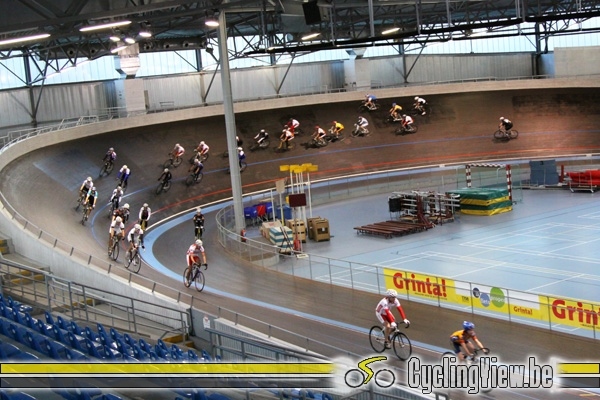 Belgisch Kampioenschap op de piste. Dan weet je dat er hard zal gestreden worden voor die mooie 3-kleurentrui. Tien renners zijn ingeschreven voor dit BK. Eerst was er een tijdrit van 200m met vliegende start. Ik behaal een gemiddelde snelheid van 50,49km/h. Er zijn er nog betere en die halen zelfs meer dan 54km/h in mijn leeftijdscatogorie. Ik behaal slechts de 7de plaats. Vervolgens was er de positieve afvalling. Het lukte me om weg te rijden en een grote voorsprong te nemen. Helaas gunde Merten De Wever het me niet om als eerste af te vallen en werd ik net door hem ingehaald voor de aankomstlijn! Hierdoor was ik al mijn ingezette krachten kwijtgespeeld en beindigde ik maar op de 8ste plaats. Bij de positieve afvalling lukte het me moeilijk om punten te pakken, bij de 2de puntentelling haal ik 1 punt en bij de 4de puntentelling behaal ik 2 punten. Ook hier weer slechts een 7de plaats. Bij de tijdrit uit de startblokken en ook bij de scratch geraakte ik niet verder dan een 7de plaats. In totaal dus een 7de plaats op het Belgisch Kampioenschap. Al had ik veel beter verwacht. Beetje terleurgesteld over het mindere resultaat. De trui ging dus zoals te verwachten naar Merten De Wever. Gelukkig werd ploeggenoot Lotte Rotman (midden op de foto) wel Belgisch Kampioen bij de 13-jarige meisjes! Bravo Lotte, je eerste titel voor 2012 in binnen! bijlage: uitslag en krantenartikel uit Het Laatste Nieuws (regio Leuven)