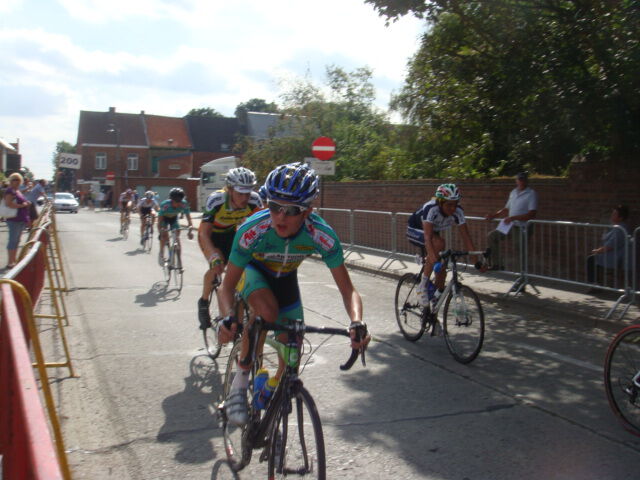 zijn verhaal : voorlaatste ronde zit ik net iets te ver. en ik wist het hé ik ben er nog naar toe gesprongen met een paar zijn we tot op 10 seconden gekomen maar we geraakten er net niet bij. we waren met een stuk of 7. der werd gevlamd. bij het optrekken in een bocht hapert mijn versnellingsapparaat, ik moet effen de rol lossen en raak miljaar niet meer bij dat groepken. het peloton kwam afgestormd, ik heb al gegeven wat ik kon 75 meter voor de streep rijden ze mij voorbij, maar ik ben blijven geven
