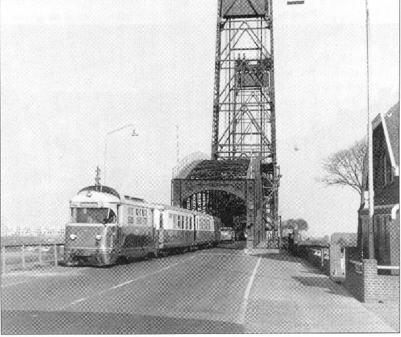 Hier een foto van het de dieseltram tussen Rotterdam-Zuid Rosestraat en Oostvoorne welke net de Spijkenisserbrug passeert. Deze tram verbinding in de volksmond ook wel het moordenaartje genoemd vanwege de vele ongevallen die er plaats vonden met deze tram heeft dienst gedaan tot midden 60er jaren. En menig Rotterdams kind ging er mee tijdens de zomervakantie naar het strand bepakt en bezakt in die vaak afgeladen tram. Er was ook een tram verbinding van de Rosestraat via de Barendrechtsebrug naar diverse bestemmingen in de Hoeksewaard ook deze is midden 60er jaren opgeheven en vervangen door bussen. De trams waren onderdeel van de RTM (Rotterdamsche Tramweg Maatschappij) welke de verbindingen onderhield met Voorne & Putten en de Hoeksewaard en zelfs op Goeree Overflakkee en Schouwen Duiveland tram verbindingen had bij de laatste 2 waren de verbindingen alleen op de eilanden zelf en sloten deze aan op de veerboten in Stad aan het Haringvliet op de boot uit Hellevoetsluis en in Zijpe op de veerboot van Rotterdam naar Zeeland waar men in Zijpe verbinding had naar Zierikzee en andere plaatsen op Schouwen Duiveland. Enkele tamstellen van de RTM rijden nu tijdens de zomermaanden een toeristische route op de Brouwersdam tussen Ouddorp en Port Zeelande.