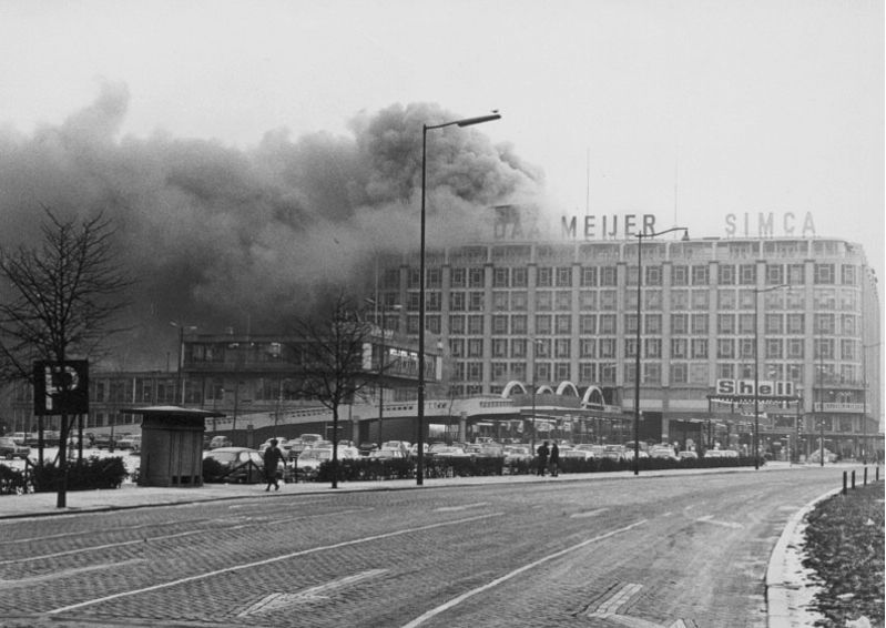 Deze foto toont het groothandels gebouw aan de Weena nabij het Centraal Station in de 70er jaren tijdens een felle brand. De foto is genomen vanaf de hoek Henergouwerlaan/Statentunnel in de richting van het centrum van de stad. Op de plek waar op de foto een parkeerplaats is staat heden ten dagen een scholengemeenschap. Ook de directe omgeving van het groothandels gebouw is op dit moment een grote bouwput i.v.m de bouw van het nieuwe Centraal Station en een ondergrondse parking aan het Kruisplein.