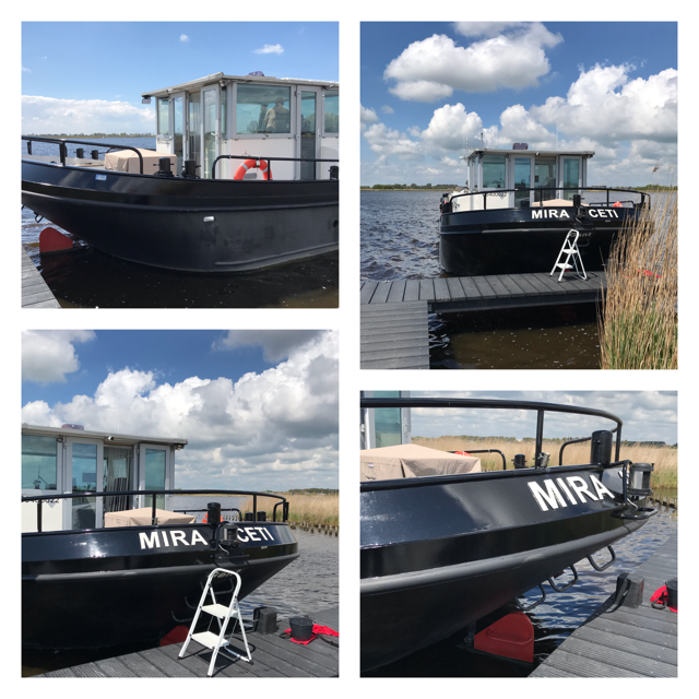 uit de boeg-en hekschroef halen om niet tegen de steiger geblazen te