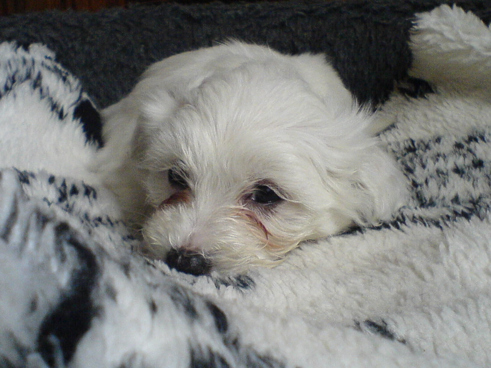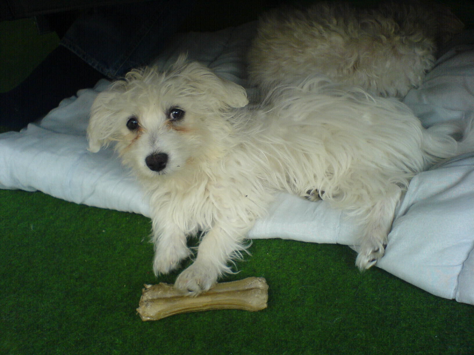 hoi,hoi allemaal vandaag vertel ik jullie dus hoe ik bij missy terecht kwam. nadat cherry er niet meer was is wisky ontzettend verdrietig en lusteloos geworden. missy zag het een paar dagen met lede ogen aan wat er uit dat speelse vliegende hertje was geworden,1 hoopje ellende alleen nog maar!! niks geen spelen meer,zielig voor zich uitkijkend,stil,alleen en eenzaam zonder speelkameraad.de hele dag huilend ,wat werd dat ééns zo mooie snuitje toch bruin. bij missy en het baasje kwam dan ook erg snel het idee van een nieuwe vriendin voor wisky . eerst nog twijffel omdat ze het gevoel krijgen van het lijkt net alsof we cherry vervangen willen ,we ze al vergeten zijn . maar toch !! ze dachten het is beter voor wisky weer een vriendinnetje te hebben. maar missy zei ook eerlijk dat het voor haar dan ook makelijker werd,niet dat ze hierdoor cherry maar even zomaar vergat , nee hoor!!! nee maar het zou minder pijn doen als je weer zo een kleine wolknol in huis hebt waar al je aandacht heen moet ,of je wilt of niet. want zulke druil oortjes opvoeden vergt echt tijd en aandacht en je krijgt weiniger tijd over het verlies na te denken. en zo zei missy en het baasje dan ook tegen elkaar,kom we halen er eentje bij ,cherry´s plaatsje neemt die er echt niet van in!!! ze zit diep in ons hart en dat zal ook nooit anders worden ook al hebben we er hondert ,er blijft altijd een plekje in ons hart wat speciaal van haar is ,en zo kwam ik er dus na 3 weken!!!! de autorit vanuit de belgische grens was niet erg leuk voor mij,tjonge wat stond mij de maag om zeg en alles kwam er dan ook meermaals uit onderweg,geen pretje!! eenmaal thuis aangekomen zit daar ook nog zo een wit doggie waaar ik gelijk heen wil , want dat zou mammie wel eens kunnen zijn . ikke blij kwispelen en er tegenaan springen op mijn mini beentjes en dan begint die witte maar effetjes een potje lelijk tegen me te doen. oéps!!,niks mammie dus!!! maar ik gaf niet op hoor ,dagenlang bleef wisky maar tegen me brommem ,wou niks van mij weten,viel me aan als ik te dicht bij kwam enz. maar ik jong en koddig,gewoon doorgaan hé!!missy zag het al niet meer echt zitten en dacht al langzaam ,dat hebben we verkeerd gedaan. maar zie daar ,langzaam maar zeker kwam die kleine smiezerdt aan me ruiken als ik sliep,lekker stiekum !!! kwam ook bij me kijken als ik piepte en deed al niet meer zo lelijk tegen me als ik weer eens niet van hem af kon blijven. en zo kwam dan ook de eerste dag dat ie met me gingen racen ,nou ja,racen!!! hij voorop en ik met mijn mini pootjes er acheraan ,hem niet kunnenden bijhoudend natuurlijk. en zo werden we toch vriendjes en speelkameraadjes van elkaar zoals de bedoeling was van het baasje en missy. toch werd wisky ook door mij nooit meer dezelfde vrolijke maltezer van toen,hij bleef terug houdender,niet meer zo uitbundig en treurde nog steeds ontzettent veel, maar spijt heeft missy nooit van haar beslissing gekregen ,want wisky was niet meer alleen en had een nieuw vriendin wat hem toch wel goed deed. maar ja ik was dan ook een lieverd die niet opgaf en hij moest dan ook wel ,of ie wou of niet. en nu ben ik dan ook weer zijn beste vriendin.,maar ik eer hem dan ook als de baas en oudste want brandy toch effe een stukje minder kan. hoe dan ook ,al met al een goede beslissing van het baasje en missy.ikke lekker bij missy een fijn thuis en wisky weer een vriendin. tja en dan nog mijn naam hé!!! baily ! maar wat wil je ook anders eerst cherry als normaale naam gekozen van missy ,wisky vond ze wel passend erbij ,zuipnamen beseft ze dan later. en zo vonden missy en haar oudste dochter dan ook dat de ikke niet meer in een andere naamlijn kon vertoefen. missy dronk in die tijd wel eens een glasje baiylýs wat haar best wel smaakte en zo werd dus mijn naam gekozen,passend bij de anderen. soms beseffen de mensen wel eens wat voor namen we hebben als ze er naar vragen,echt lachen!!! maar ze vinden het dan ook allemaal echt geinig ,vooral als ze dan ook nog horen dat missy haar levenlang eigenlijk zo goed als niks drinkt van al dat spul .hi,hi. maar van dit verhaal van mij en wisky heeft missy ook weer wat geleerd,vandaar dat brandy na een driekwart jaar er weer bij kwam maar dat vertel ik jullie weer de volgende keer. een lekkere natte sabbel van mij voor jullie ,doeggg