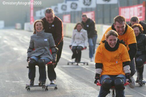 Deze morgend vroeg uit de veren voor weer een super spektakel van Deckers en Ornelis op het circuit van Zolder , voor speciaal de secretaressedag ,waarbij de bazen hun vrouwelijke collega met een bureaustoel moesten voort duwen over een 100 tal meters ,de eerste werd beloond met een parachtige reis ,naar Turkije .