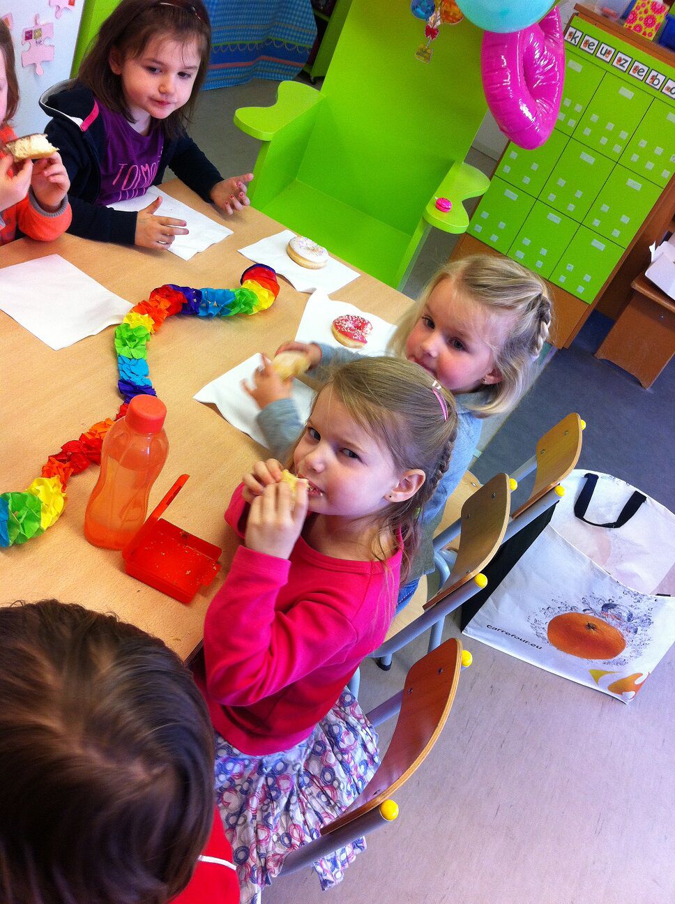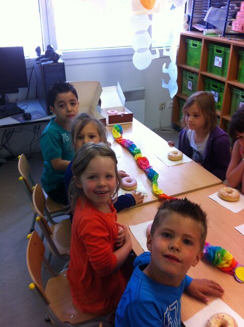 Vandaag is Alice 6jaar geworden!!! Wat was het weer een groot feest in onze klas! We hebben gezongen en gedanst. Alice had super lekkere donuts bij! Wat was dat weer Smullen zeg! Dankjewel Alice voor deze lekkers donuts! En om te drinken had ze fristi en chocomelk bij!!Heerlijk! Alice wij wensen jou een hele fijne verjaardag!!! Van al je lieve vriendjes en de juf!!!