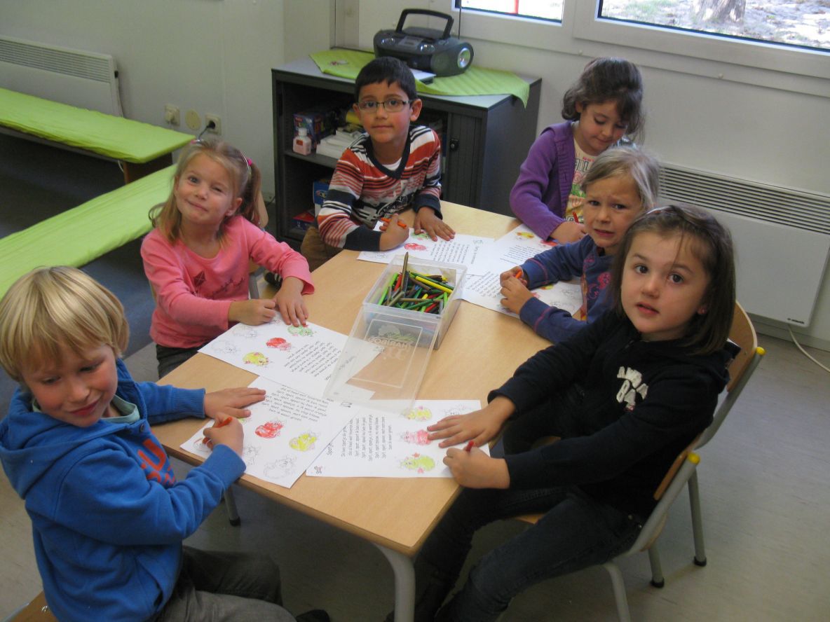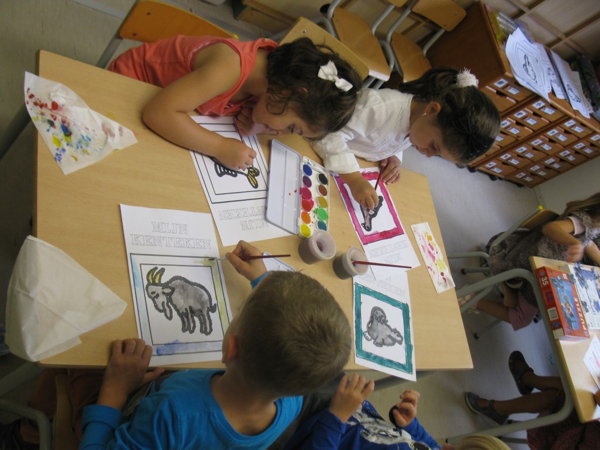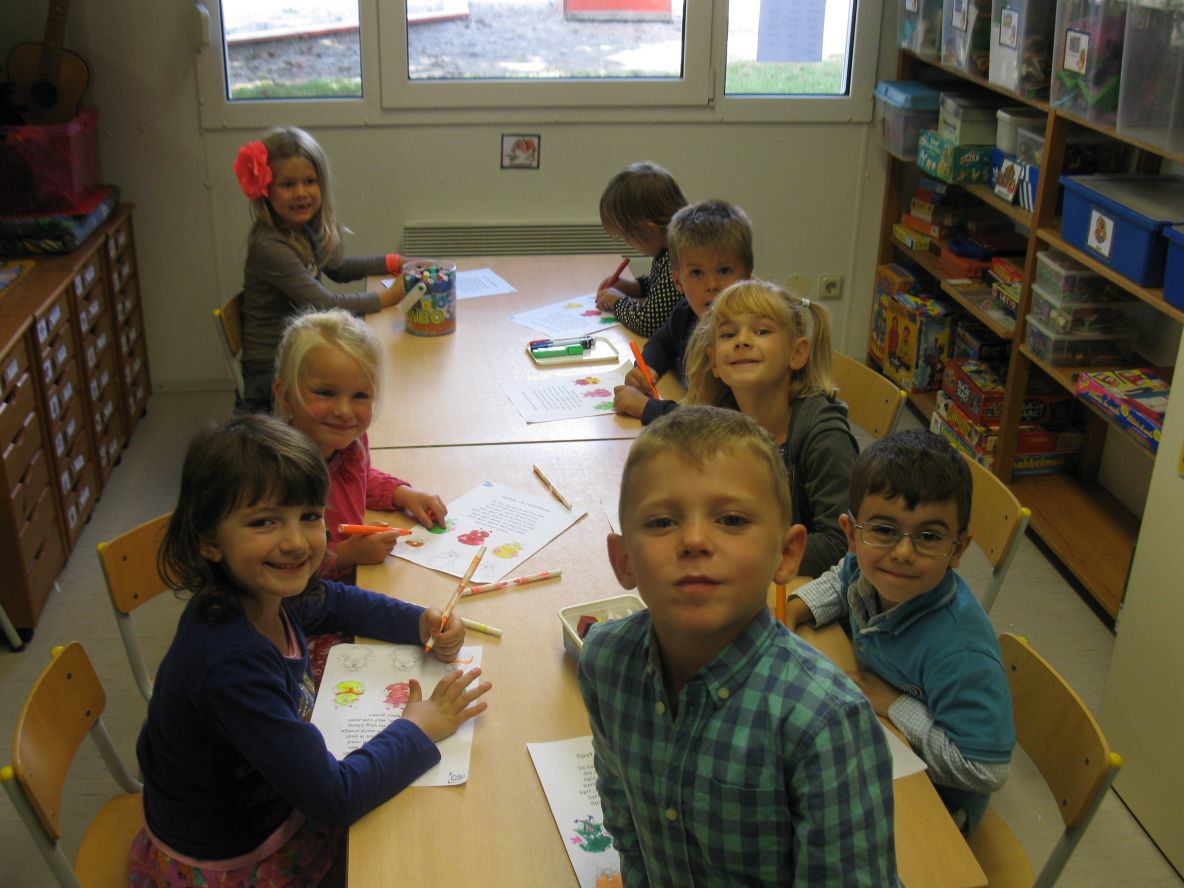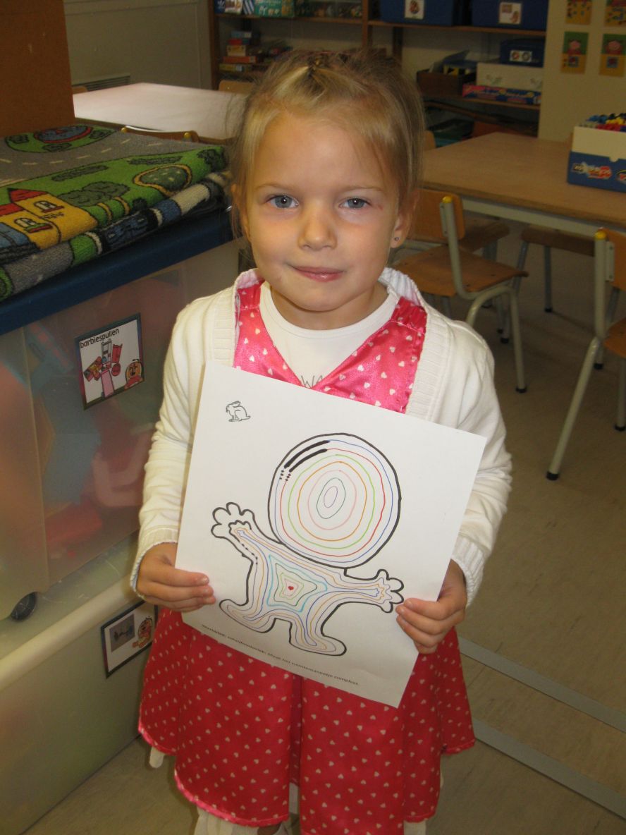 De eerste twee weken werkten we rond het thema 'naar school'. We namen rustig de tijd om elkaar, de klas en de juf beter te leren kennen. De voorbije twee weken werkten we rond het thema 'Spatje'. Spatje is een ruimtewezentje dat ons mee nam op ontdekkingsreis in de wereld van vormen en kleuren. Hier enkele sfeerbeelden...