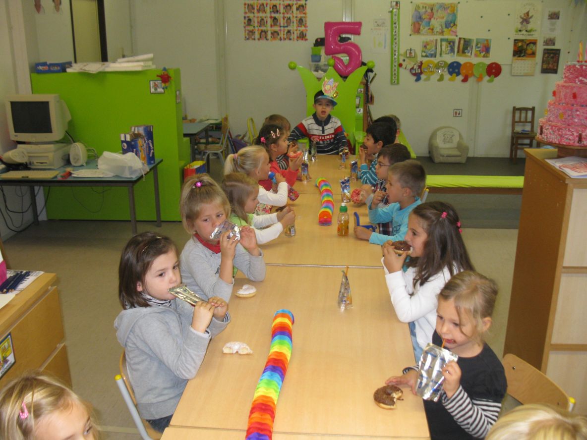 Hiep hiep hiep.... Hoera!!! Vandaag werd Egemen 5 jaar! Dus we mochten alweer aan de feesttafel. Het is een echte feestweek in onze klas. We genieten met volle teugen van al dat zingen, dansen en smullen. Egemen trakteerde ons met lekkere donuts, fruitsap en koekjes. Héél hard bedankt!