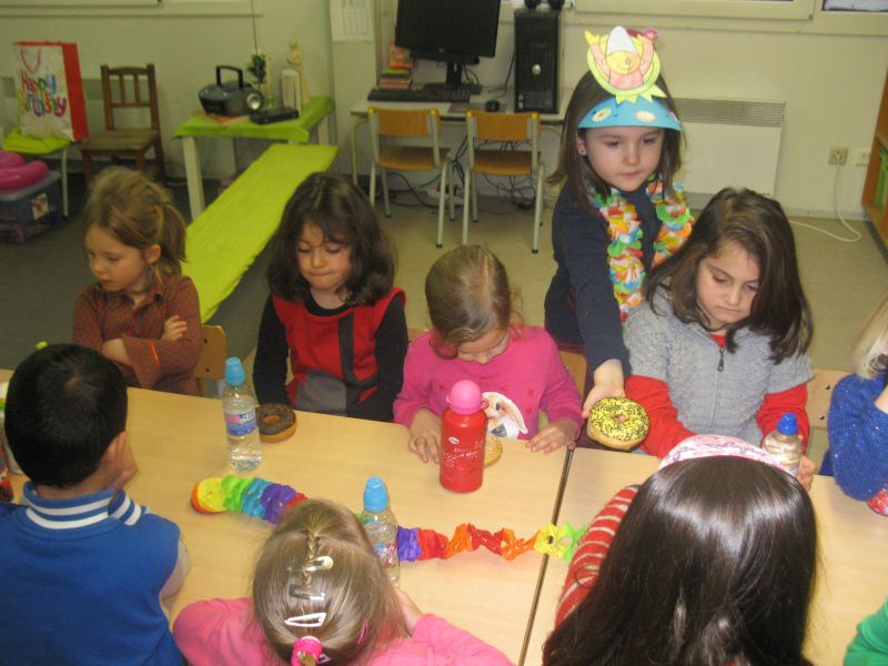 Britt bracht heerlijke donuts mee naar de klas. Dat was smullen! Dankuwel Britt!