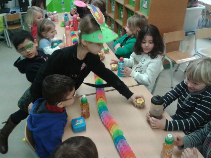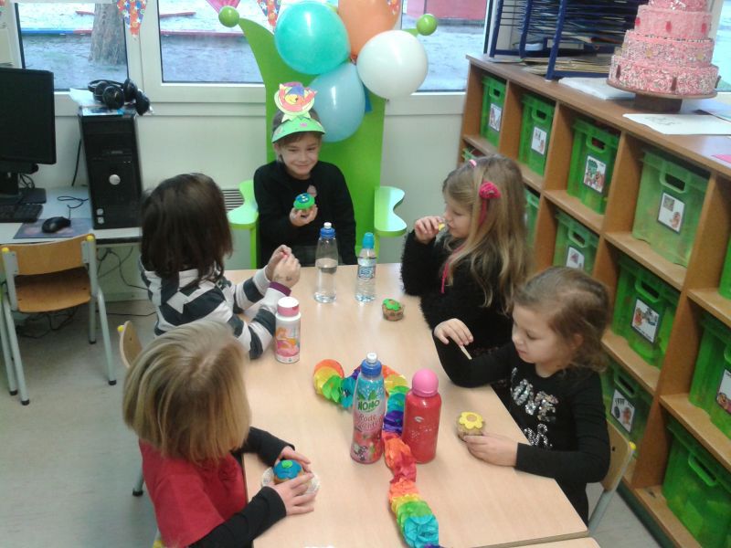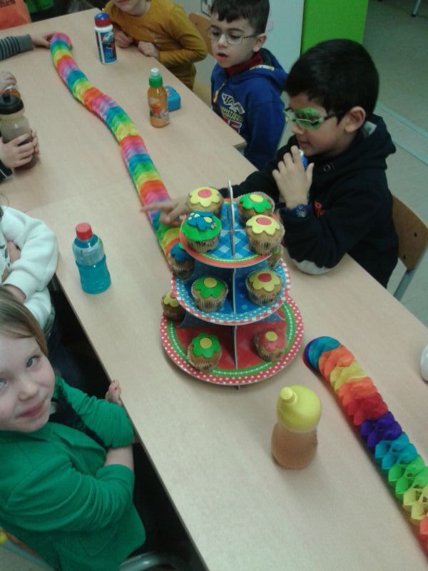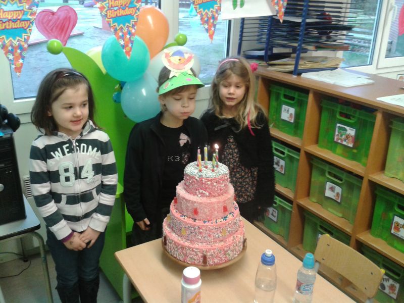 Joepie, vandaag is het de verjaardag van onze lieve Michelle! Ze wordt al 6 jaar! Het was een super leuke dag! Zingen, dansen, kaarsjes uitblazen, tekeningen kleuren, lekker smullen,... Hopelijk had je een fijne dag Michelle! Bedankt voor de heerlijke gebakjes! Dikke zoen van de juf en al de vriendjes van de klas!