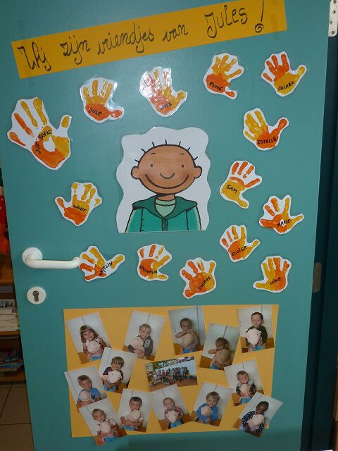In onze klas hebben we ook 2 vriendjes, Jules en zijn hondje Snuffel. Jules werkt mee in onze klas en Snuffel gaat ieder weekend mee logeren bij een kindje van onze klas.