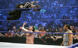 Back at 5:09, Punk stomped Hardy and covered for two. Punk hit three whips into knees and locked in an abdominal stretch. Punk broke the hold and strong whipped Jeff to the corner and covered for two. He whipped Hardy to the corner again, but he ran up and hit Whisper in the Wind for two. Hardy hit the mule kick for two. Hardy went to the top, but Punk caught him up top and hit a superplex for a near fall.