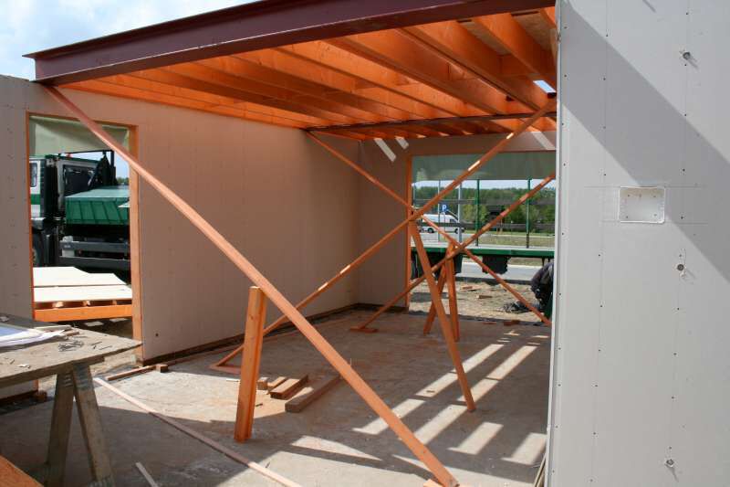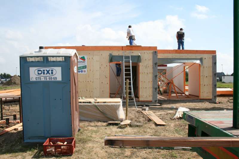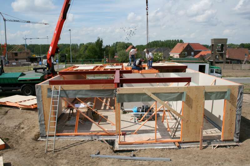 • De zetel, de tafel, de stoelen ... en de keuken in opbouw