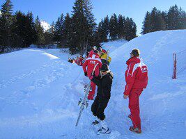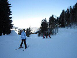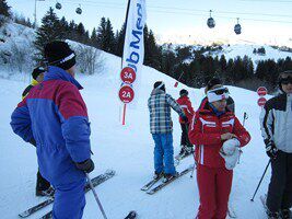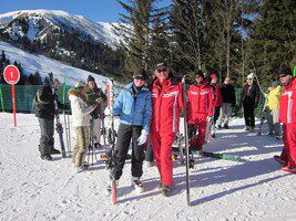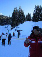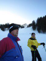 Maandagmorgen , mijn groep, de beginners wordt opgedeeld volgens de taal die we spreken. Ik sluit me aan bij de Frans sprekende groep. Samen met mij zitten nog enkele insiders, Fransen, Brazilianen. Alhoewel ik al een paar keer geskied heb start ik toch bij de beginners, het geeft me meer zekerheid. We starten met de eerste pasjes te zetten en beginnen op de babypiste. Na de middag nemen we de bus en gaan we de eerste echte piste verkennen. We laten ons slepen door de pannenkoekenlift. Het is een supernamiddag, het lukt me goed, ik heb er echt een heel goed gevoel bij. De monitor Jean-Robert van ESF is echt heel goed. Hij stuurt iedereen bij waar nodig. Filiep start in groep 2A, wat al meer ervaring vraagt. Ook hij is heel tevreden over de deskundige uitleg die hij krijgt van zijn monitrice Evelyne. De pistes liggen aan het hotel dus skies aan en hup die afdaling doen, zo gaat dat bij deze groep.