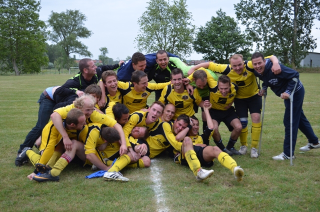 N'Yzer wint de dubbel. Na de titel in 2A en promotie naar eerste was N'Yzer weer aan het feest: het won voor de 2e keer op rij de vlvb-beker. De tegenstand, kampioen in 2e Duvelke Astene, werd in de eerste helft meteen vakkundig opgerold. Een gretig N'Yzer geeft amper een kans weg, en speelt Astene van het kastje naar de muur. Tweemaal Deckie en eenmaal Ollie: aan de rust staat het 3-0, en daar komt Astene zelfs goed mee weg. Het waren stuk voor stuk parels van doelpunten, collectieve acties met een heerlijke finish. Op een paar kopkansen geven we amper iets weg achteraan. De topschutter van Astene voelt zich niet in z'n sas, maar die reden heet Ackou. In de tweede helft dreigt Astene - dat vorige week nog Dakwerken Vinckier uit de beker wipte - toch wat meer. Goud-zwart houdt de boel rustig onder controle. Een vrije trap wordt wel mooi binnengekopt, 3-1. De Duvelkes gaan op zoek naar de aansluitingstreffer maar die komt er niet. Na het eindsignaal barst de feestvreugde los: Don't you know pump it up, N'Yzer wint de cup!