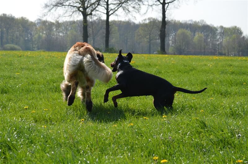 wat een resultaat ze zag er heel mooi uit , haar haren lagen heel losjes en hadden weer een mooie glans , ze zag er weer netjes uit. Na het vervelende trimmen ( want dat doen ze niet graag ) zijn we naar de weide geweest om met haar zus liebe gaan te spelen, man man die hebben er van genoten zalle, ze hebben hun nogal uitgeleefd ! Rennen,spelen,springen .....daarna Fadou en Babs er nog bij gehaald, weer een toffe geslaagde dag !