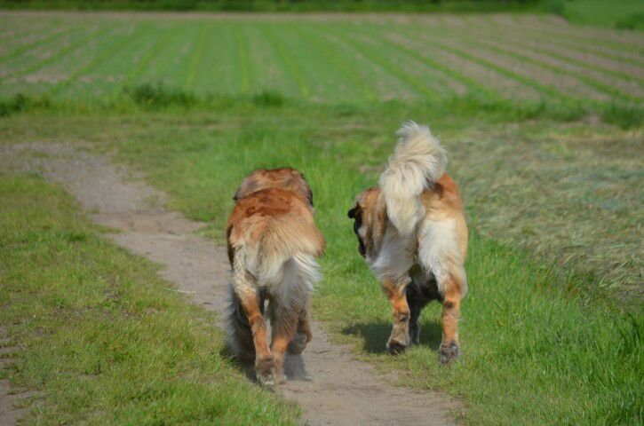 Woensdag en donderdag twee mooie dagen voor een wandeling gepakt en gezakt met drinken, codac, balletjes , snoepjes ...... mijn buurmeisje Cindy met haar twee honden Mickey en Iota waren ook van de partij , en raar maar waar ik durf het hard op te zeggen ons Liebe was " is moe " :) Ze was eerst al drie kwartier met Babs mee geweest, en dan nog eens drie kwartier met Iota, Mickey, en ons Fadoutje ! Het warme weer had er ook wel wat mee te maken denk :)