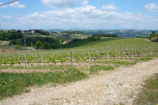Toscane. Ik zag in de verte dat de regen er met bakken uitviel boven Firenze.