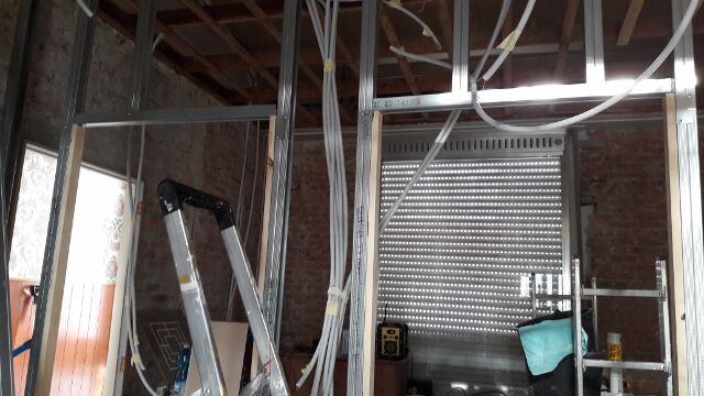 Vanaf nu is de oude living nog een herinnering. En ondanks dat de gyprocplaten er nog niet staan, 'voel' je de apartes ruimte als je er in staat. ZALIG. Na al die tijd dit steeds in gedachten te hebben, wordt het stilaan echt.