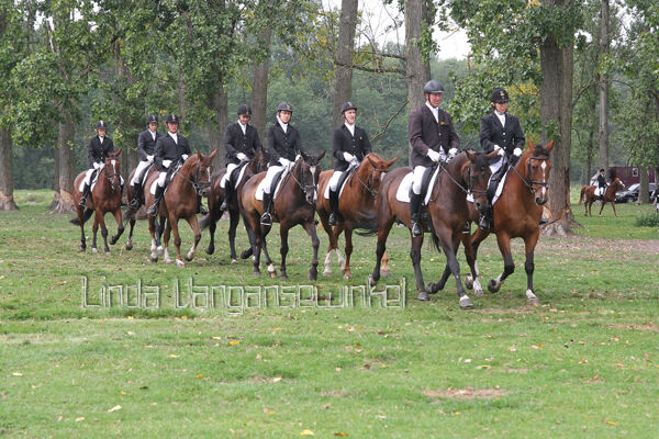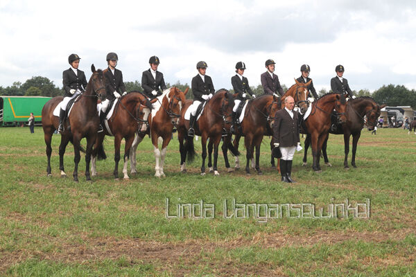 Onze acht ruiters van de hoogste reeks groepsdressuur. Gerard stelt zijn achttal voor aan de jury. Felix uit Meldert maakt zich klaar voor de proef. Zijn ruiters hebben er alvast zin in. Ze winnen uiteindelijk verdiend de proef.