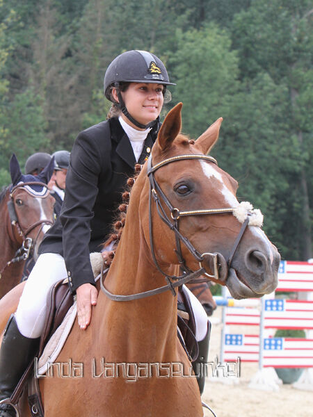 We raken zo stilaan over de helft van onze wedstrijden. De zomer stelt niet veel voor in ons Belgenlandje, maar op een wedstrijd kan je je geen beter weer wensen dan dat van tegenwoordig. De resultaten: Onze achttallen mochten weer eremetaal afhalen. Het achttal van ZA moest Meldert laten voorgaan. Zij verdienden vier punten meer. In klasse Midden waren wij de sterksten. Nipt op de hielen gezeten door Meldert. Individuele dressuur, hier werd er overgekampt door Goele, Kirsten en Pieter. Allen behielden ze hun plaats van de voormiddagproef. Goele werd twee maal derde, Kirsten twee maal tweede, dus was er geen discusie ... Pieter Foets andermaal winnaar in de hoogste reeks. In Z1 eveneens Pieter uit Grote Brogel de numero uno. Ook was er goud voor Overpelt in dressuur, hiervoor zorgde Kelly Vanhoudt met hare Gentleman. In het springen was de schoonste en grootste schotel voor Joris Aegten uit Wauberg, lid van RV Elen. Met Tereusa liet hij de snelste foutloze barrage optekenen. Tessa Aerts en Wim Aegten bleven ook foutloos. In Klasse Midden mocht Griet Geysen opnieuw het goud afhalen. Enkele weken eerder verdiende ze ook al een eerste plaats met Why Not. Kijk naar de foto's en zie hoe gelukkig ze is. Het straalt ervanaf! In Licht was het goud ook al voor de kweetniethoeveelste keer voor Dennis Swennen met Baraya. Stijn Loos werd mooi vierde.