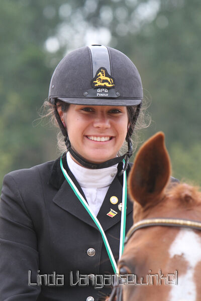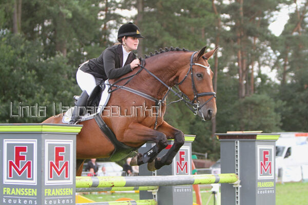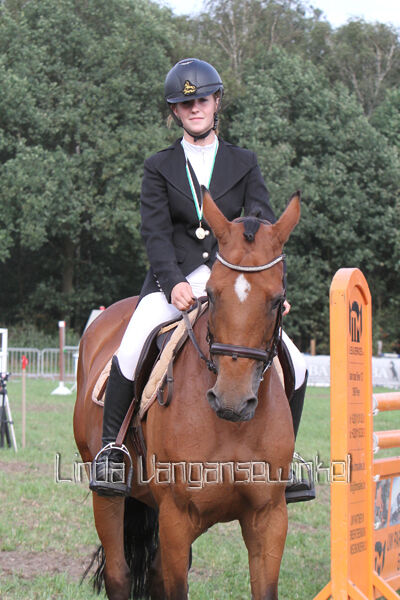 In het springen wilde het niet echt lukken en maakten onze springkanonnen een voor een een foutje. Was het niet in omloop één, dan was het in omloop twee. Was het niet in Zwaar, dan was het in Midden. Dju toch Griet, Yentl, Luc, Danny, Jan, Kris, Tessa, Peter, allemaal hadden ze af te rekenen met een vervelend pechbalkje. Maarrrrrr, gelukkig was er ook Neeltje. Neeltje Vanrusselt van RV Stevoort mocht met Feline in klasse Licht barrage rijden. En ze werd wel kampioen! Neeltje heeft een heel regelmatige zomer achter de rug. Verschillende tweede plaatsen kon ze behalen maar dat goud was nog niet gelukt. En vandaag op het Nationaal lukte dit wèl.