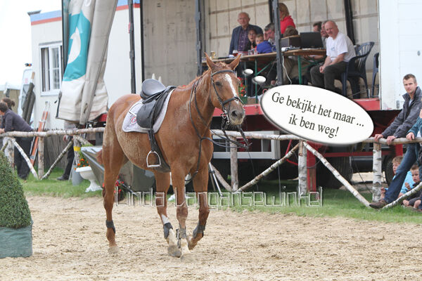 Wij hadden meer geluk dan de pony's gisteren... hun wedstrijd werd wegens wateroverlast afgelast. Dat van ons kon gelukkig wèl doorgaan. En het was mooi, mooie terreinen, mooi weer en mooie wedstrijden. Onzen Stijn, ... het kersverse-papa-zijn zette hem blijkbaar aan tot superprestaties in Licht. Met Petit Fleur won hij de wedstrijd! In Zwaar was Carmen Moors de gelukkigste, dit keer hielp Cijndi haar aan het goud. En in Midden was de schotel voor Sus Dirikx. In dressuur was het vooral Pieter Foets die veel schotels verzamelde. Die kan onderhand al een hele bende te eten geven op zelf verdiende borden. Veronique werd tweede en Yentl derde. In de groepsdressuur was vooral Meldert de grootste prijzenpakker.