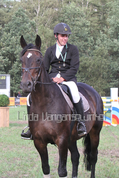 Joris Brebels in de prijsuitreiking. En dan was er nog ne ruiter, ... de pelles mag Joline haar zadel warm houden.