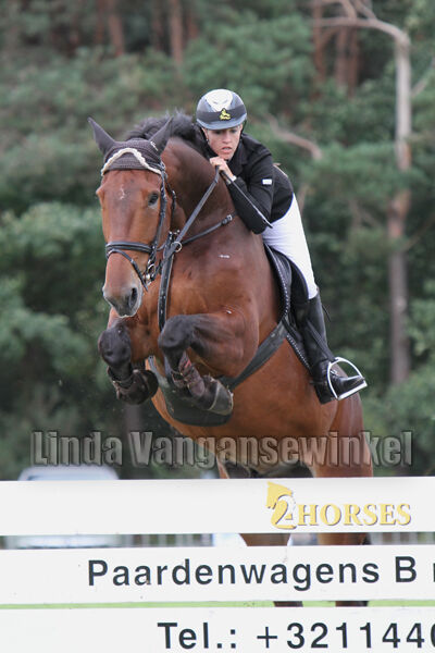 Klasse Zwaar ... die deelnemers kregen een stevige regenbui te slikken. Anders hadden er heel wat meer ruiters de barrage bereikt. Amper drie slaagden erin. Joris Schepers vier strafpunten, daarna Tessa Aerts die er acht kreeg. Als laatste Joris Aegten ... gewoon foutloos blijven stond hem te doen om de titel te pakken. Trager dan zijn voorgangers, maar Joris bleef wel foutloos! Kletsnat geregend mocht Joris de schotel afhalen. Ook kreeg hij de "gulden sporen" omgegespt. Die mag hij houden tot er volgend jaar weer een nieuwe kampioen is.