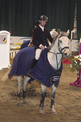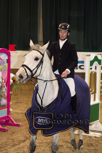 Het stilstaan tijdens de prijsuitreiking wilde niet echt goed lukken. Paardje zat nog vol adrenaline, wat wil je ook ... nationaal kampioen is immers niet niks.